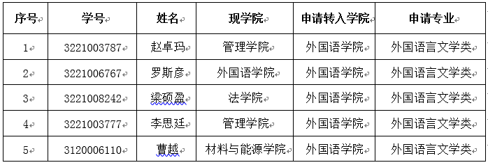 本科生轉專業錄取名單公示及辦理轉專業注冊手續請關注學校教務處通知。