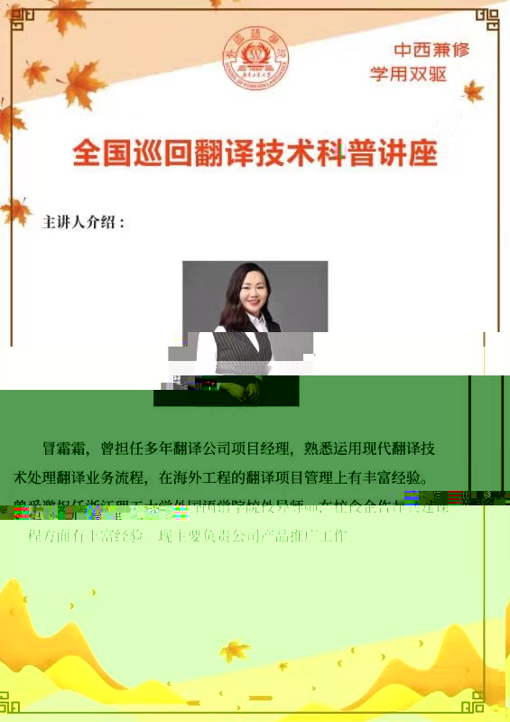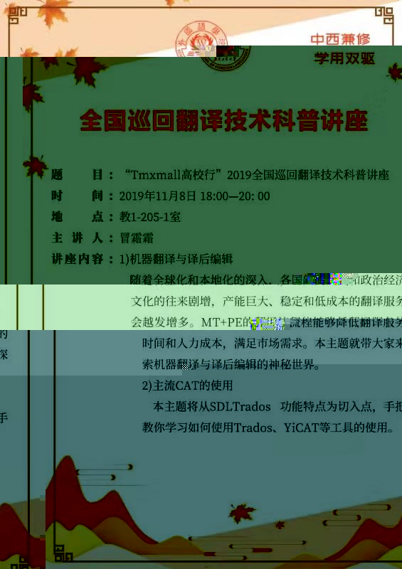 歡迎MTI全體研究生、翻譯專業本科生踴躍參加講座。
