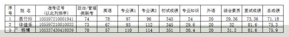 公示時間:2017年3月30日-4月8日。如對複試結果有異議,請聯系學院教務辦公室左老師,電話39322897。