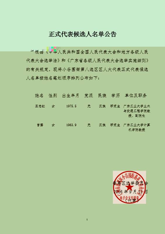 五、候選人簡介:後附“正式代表候選人名單公告”,選民可以進行了解。