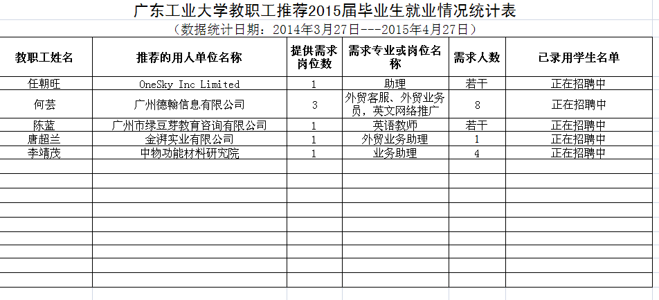 上一條:教職工推薦2015屆畢業生就業崗位統計(四)