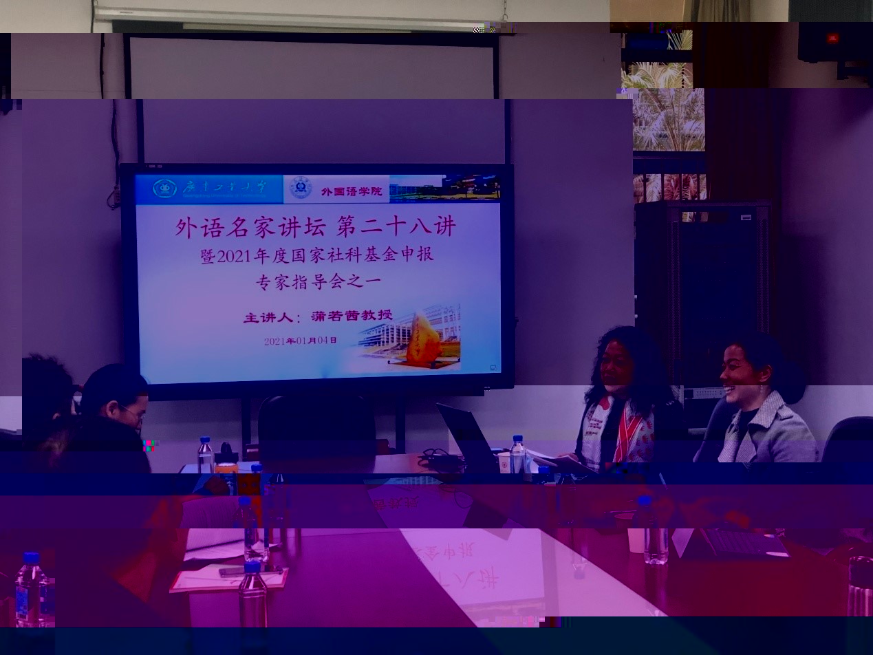2021年1月4日上午11點10分,在太阳成集团tyc234cc小會議室,我院舉行了外語名家講壇第二十八講暨2021年度國家社科基金申報專家指導會之一,主講人是暨南大學蒲若茜教授,講座的題目是“外國文學研究與科研課題申報”。