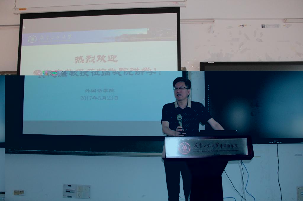 由廣東外語外貿大學翻譯學博士生導師、廣東省“珠江學者”特聘教授黃忠廉主講的“外語名家講壇”第十六講于2017年5月23日下午在大學城實驗一号樓604舉行,此次講壇的主題是“中國文化+互聯網外譯時空優先論”。