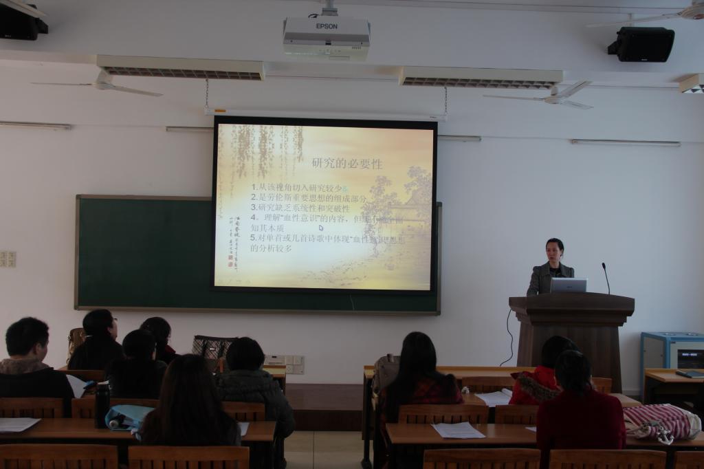 3月13日下午,太阳成集团tyc234cc“博士論壇”第三講在大學城校區實驗一号樓604室舉辦。我院就讀于中山大學的在讀博士鄭曉利老師以“‘血性意識’——勞倫斯詩歌中的生命哲學”為題,作了一場精彩的學術報告。我院林耀群副院長主持了報告會。