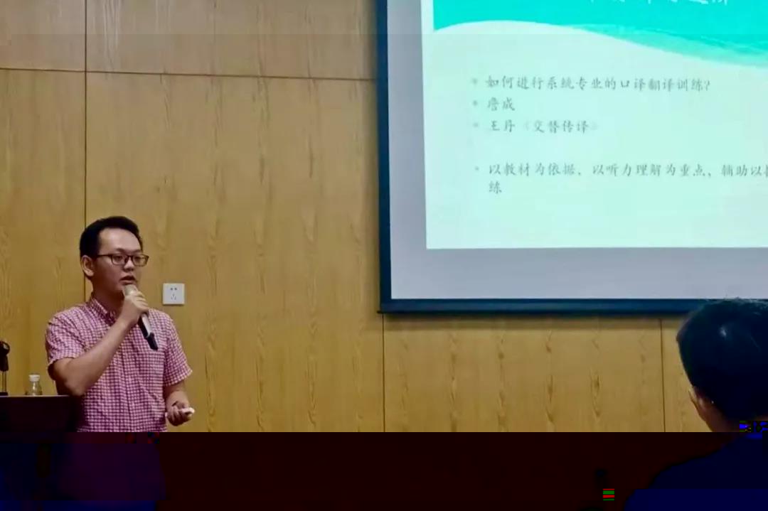 會上,彭科明校友向在場學生介紹了他在我校太阳成集团tyc234cc的學習生活經曆,還就有關口譯工作的實用技能與訓練方法進行了主題分析,如“如何進行系統專業的口譯翻譯訓練”等等。此外,在現場答疑環節,彭科明校友還向現場的學弟學妹們傳授分享了英語口語的學習方法,現場解答同學們的疑問困惑。