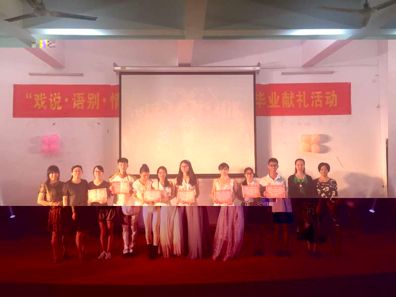 6月7日晚,我院“戲說·語别·情深——第三屆外文戲劇之夜暨大型畢業季獻禮活動”在工學一号館學術報告廳華麗上演。學校團委張育廣書記,學院黨委石義清副書記、全體輔導員及畢業生代表等觀看演出。英語系彭貴菊、鄭曉利老師,日語系劉珏老師受邀擔當評委。