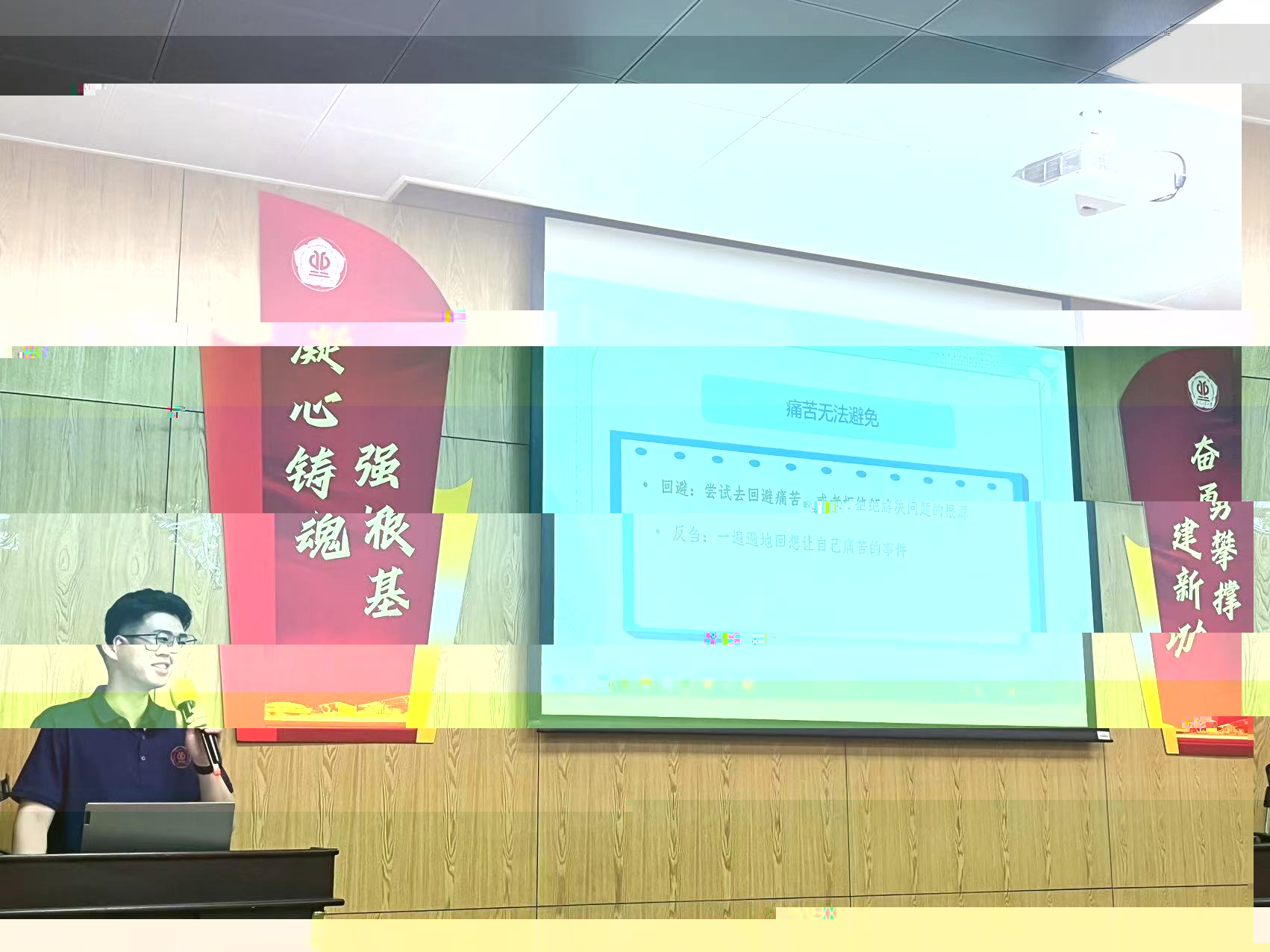 大會伊始,黃祺銳老師總結了心理輔導站自新學期以來的工作。首先是堅持推出陽光心靈氧吧知識科普欄目,取得了一定成果。心理推文内容精簡豐富,形式易于傳播,有效調動學生了解心理知識的積極性,需要大家堅持做好欄目。其次,學院心理輔導站在開展常規的演講比賽、情景劇比賽之外,還将與兄弟學院開展首次心理知識競賽。比賽向全校招募選手和觀衆,比賽規模更大,心理站全體成員要增強責任意識,嚴謹認真辦好心理知識競賽。最後,黃祺銳老師為在座同學們進行了題為“學會自我關懷”的心理培訓。黃祺銳老師從自我關懷的時機、非自我關懷的表現以及自我關懷的方法三個方面,向在場學生講解了學會自我關懷這一心理健康知識。自我關懷對學生的心理健康具有重要意義,通過本次培訓,同學們有效掌握了自我關懷的方法,能在以後的學習生活中更好地進行自我心理調适。