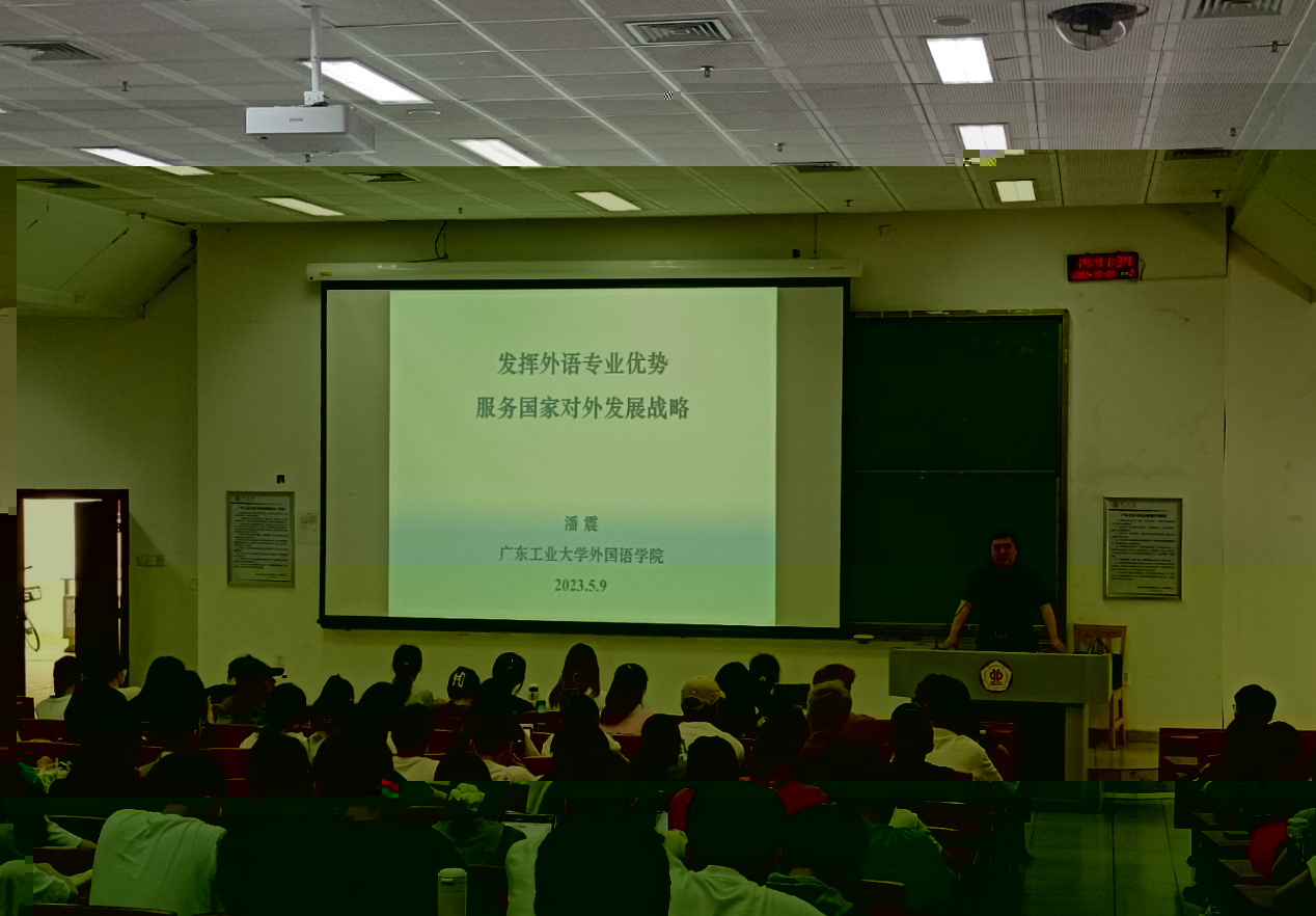 潘震院長結合學習貫徹落實黨的二十大精神,以修昔底德陷阱、軟實力、銳實力等概念闡述為切入點,指出外語學子應具備深厚人文素養和廣闊的國際視野、跨文化溝通能力強、通曉國際事務及規則、了解中西思維差異、具備跨學科研究能力。新時代外語人才應該深度融合内容與語言,将提升國際傳播能力、區域國别研究能力和外語+人工智能/大數據融合等作為發展方向。同時,他強調同學們應當了解我國的曆史文化和當代國情,具有中國情懷和中華優秀文化素養,立足中國實際、講好中國故事、傳播中國聲音,努力成為“高素質+創新型”社會主義建設者和接班人。最後,他勉勵同學們要自信自強、守正創新,踔厲奮發、勇毅前行,為民族複興、國家對外發展貢獻青春力量