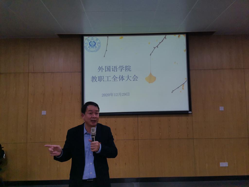 12月29日下午,我院在大學城教學一号樓205-1會議室召開全體教工大會集中學習學校第五次黨代會精神,并以黨代會精神為指引,部署推進學院期末有關工作。會議由學院黨委劉偉書記主持。