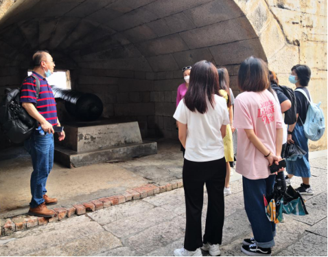 威遠炮台是中國保留得最完整、最有規模的鴉片戰争時期的古炮台之一。身處這片著名的古戰場遺址之上,師生黨員們一步一步丈量着腳下的石頭路,觸摸着一門門經曆過戰火硝煙的古炮,近距離感受曆史的遺迹,不禁想到民族英雄關天培在這座炮台中坐鎮指揮廣東水師英勇抵抗英國侵略軍進攻的英姿。黨員們擡頭可見寓意“牽手兩岸”的虎門大橋,遠眺便是碧海藍天、輪船穿梭,深深感受到建國後中國翻天覆地的巨變。