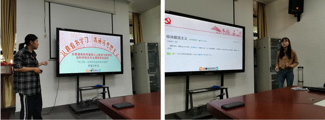 随後,戴晖老師作為一線教師,結合自身留學經曆以國際視野剖析國内外生活環境的差異,激勵大學生要以批判精神來面對社會局勢和言論,運用專業知識和技能講好中國故事。肖偉老師以外界對中國發表的不當言論事件為例,指出青年要理性表達愛國立場,堅決維護國家尊嚴。何婧雲副書記号召學生黨員既要立足當下也要志存高遠,認真思考實現愛國情報國志的具體實踐路徑,做中國文化走出去的踐行者,做當下中國故事的演繹人,中國國際形象的代言人。