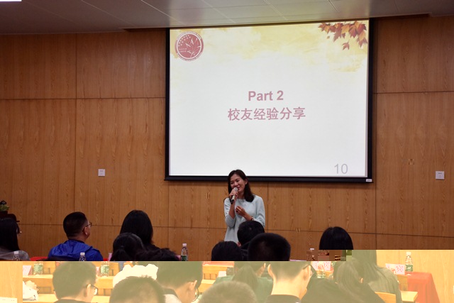 活動當日,我院三位優秀校友在大學生涯與職業規劃分享交流會上為同學們分享了她們的人生、學習、生活、職場等方面的經驗與思考。