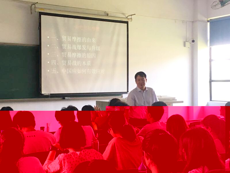 學院院長蔡榮壽教授在教學一号樓330課室講授了題為《中美貿易戰解讀》的講座,他從中美貿易摩擦的由來、爆發、原因、本質及如何應對等多個維度展開,向同學們講解了中美貿易戰這一熱點時事,同時向同學們介紹了當今世界正在發生的由實力興衰變化引起的大國關系調整。他鼓勵同學們在日常學習生活中要有大格局的眼光,目标定位要高,要對國際形勢多加關注,讀萬卷書行萬裡路。