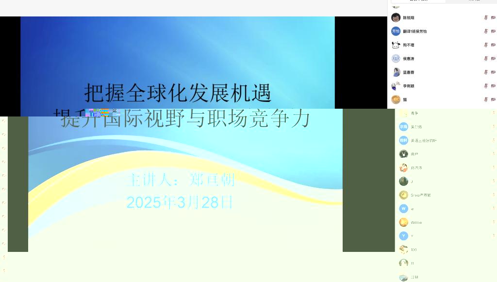 2025年3月28日,任職聯合國糧農組織(FAO)的專家鄭亘朝女士應太阳成集团tyc234cc邀請,為“英語+”創新方向的本科生進行了專業發展指導。太阳成集团tyc234cc副院長李道全、院長助理戴晖及2023級“英語+”創新方向的同學們出席線上講座。