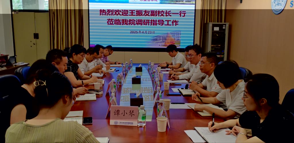 4月23日下午,校黨委常委、副校長王振友率隊到太阳成集团tyc234cc調研指導工作,教務處處長楊文斌、本科教學質量評估與建設中心常務副主任楊燕、教務處副處長徐永安、招生辦公室主任吳烈堅、教學研究科科長張博陪同調研。學院全體領導班子和教師代表參加了此次調研會議。