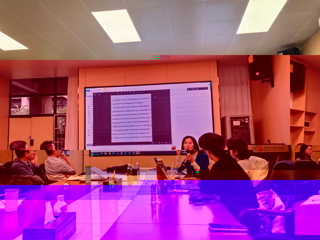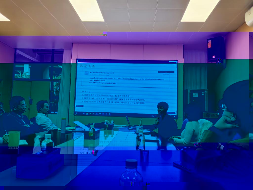 在骨幹教師分享環節,楊小京老師率先發言,圍繞“AI賦能教學的創新實踐”進行了案例展示。他介紹了兩個應用場景:一是基于現有教學資源的智能再定制,通過AI工具對教材内容進行拓展與優化;二是利用AI生成多模态教學材料,如借助NoteBookLM模塊創建可視化、互動式的學習内容,幫助學生深化語言理解與表達。随後,黃誕平老師結合自身教學實踐,分享了AI在課堂教學與教學管理中的多元應用。她介紹了收集并整理的高效教學Prompt,展示了AI在教案生成、學習資料制作及作文批改等方面的實際成效,并通過個性化單元詞彙生成,探索了AI助力學生精準學習的可能性。劉思雯老師以《領航大學英語(第二冊)》Unit 2 Thinking of You 為例,作了題為“視覺化的浪漫——AI賦能大學英語教學案例分享”的彙報。她展示了AI圖像生成在描寫性閱讀教學中的創新應用,引導學生從“理解文本”走向“再現文本”,通過Prompt構建與AI生成實現語言與情感的可視化表達。她認為,AI在課堂中既是“視覺反饋的鏡子”,也是促進語言理解與創造表達的助推器。在三位教師分享後,吳少躍副院長充分肯定了教師們的探索成果,并結合自身課堂實踐,分享了AI輔助備課與課堂互動的經驗。他指出,AI賦能教學的關鍵在于“以教促智、以智提效”,要把技術融入教學目标與學生發展之中,實現智慧教學與深度學習的統一。